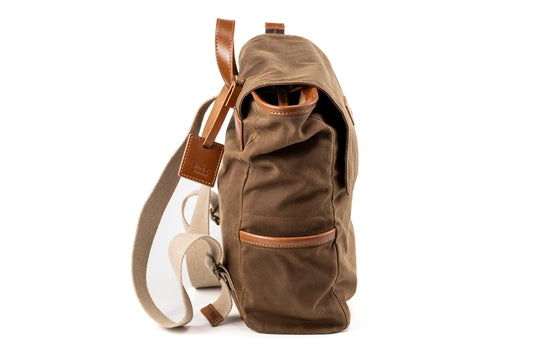 Leather Backpack In Waxed Cotton Made in USA Brown