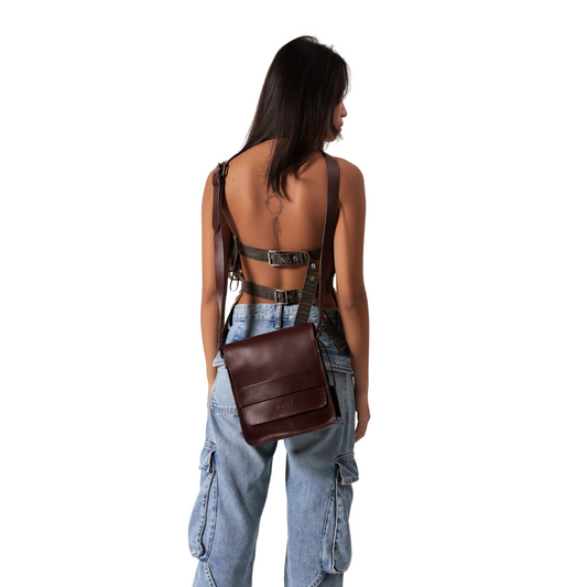 Leather Backpack In Waxed Cotton Made in USA Brown