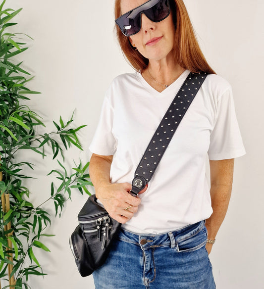 Stevie Gold Studded Black Leather Strap