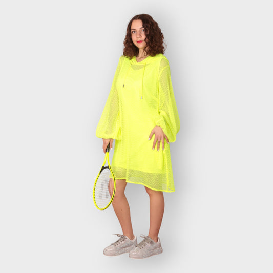 Aphrodite Neon Lime Holiday Resort Midi Dress With Hoodie Inclusive Plus Size Short Version