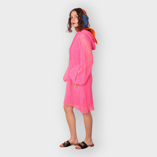Aphrodite Hot Pink Holiday Resort Midi Dress With Hoodie Inclusive Plus Size Short Version