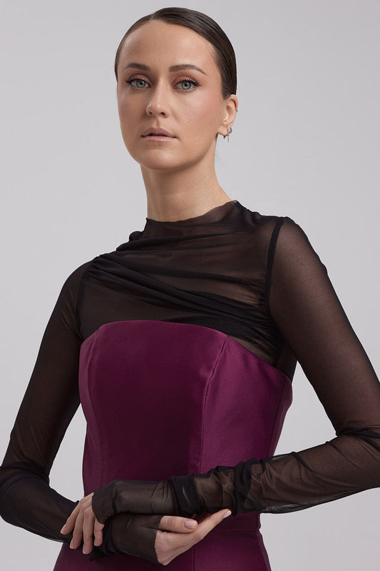 GIGI DRESS + DRAPED TULLE TOP | strapless cone maxi in deep burgundy