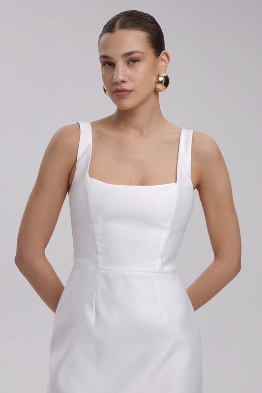 LUNA DRESS + TULLE SKIRT | square neckline mini in white
