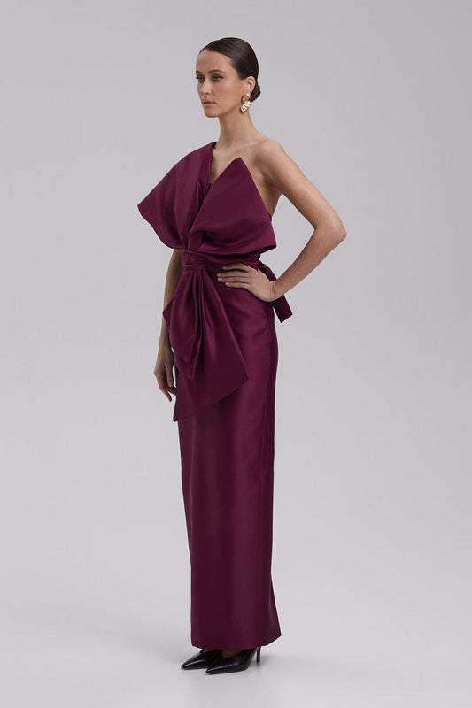 GIGI DRESS + OBI BOW | strapless cone maxi in deep burgundy