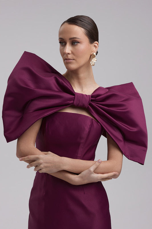 GIGI DRESS + KIMONO BOW | strapless cone maxi in deep burgundy