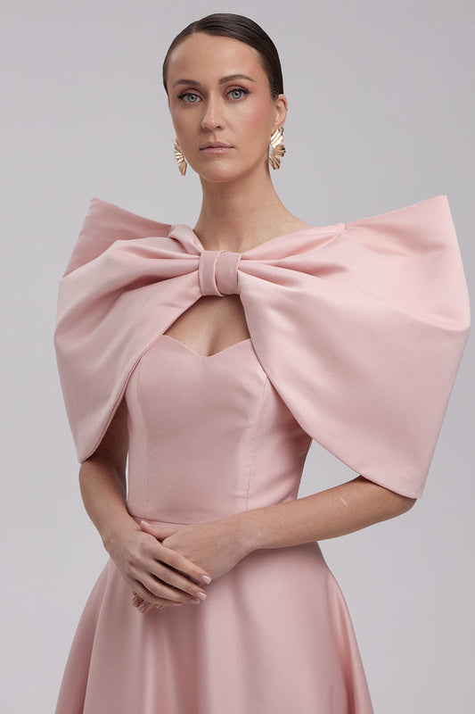 SABINE DRESS + KIMONO BOW | heart neckline midi in powder pink