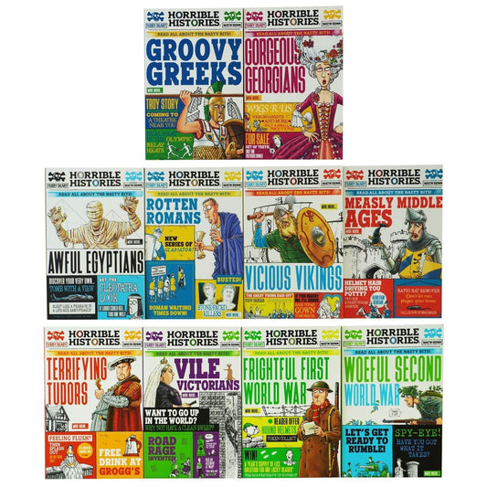 Horrible Histories Savage 10 Book Collection Set (Awful Egyptians, Rotten Romans, Vicious Vikings, Measly Middle Ages, Terrifying Tudors, Vile Victorians, Frightful First World War & More)