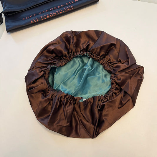 Sample Pure Silk Hair Bonnet Jade and Coffee | Double Layer with Adjustable Elastic | 100% Silk 22 Momme