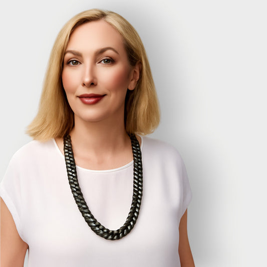 Chunky Black Aluminium Chain Necklace - Opera Length 32 Inch - Cleopatra