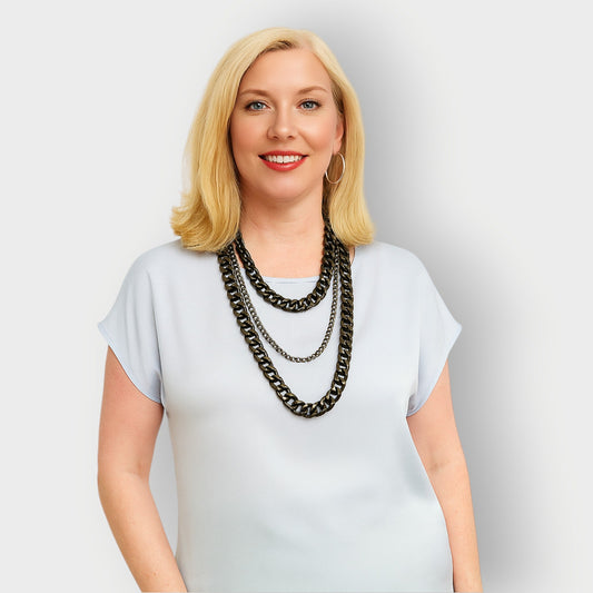 Chunky 3-Tier Black Aluminium Metal Chain Necklace - Cleopatra