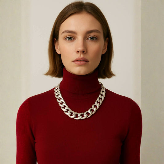 Unisex Chunky Silver Aluminium Chain Necklace - Matinee Length 22 Inch - Cleopatra