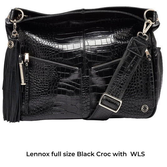 Wide Leather Cross Body Strap - Black Croc