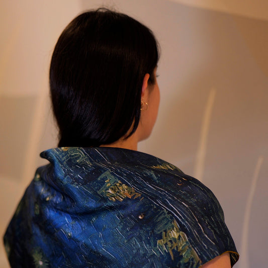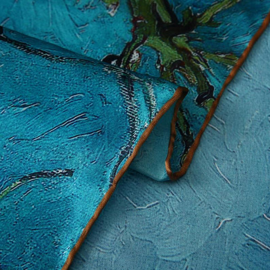 Starry Night Over the Rhone by Vincent Van Gogh | Oil Painting Large Square Pure Mulberry Silk Wrap | Head Scarf