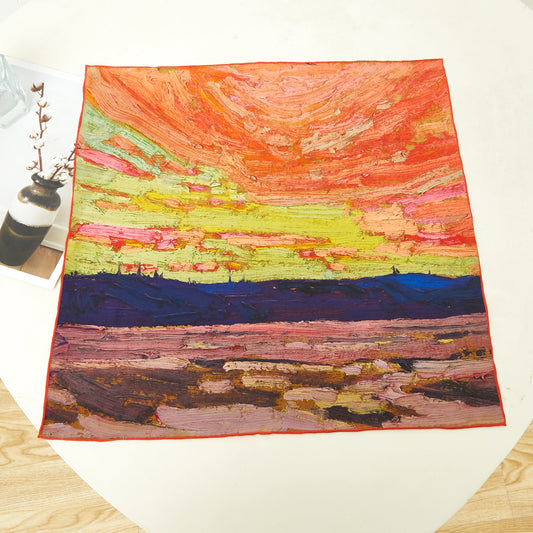Sunset by Tom Thomson | Oil Painting Large / Small Square Pure Silk Head Scarf | Canadian Artist Collection