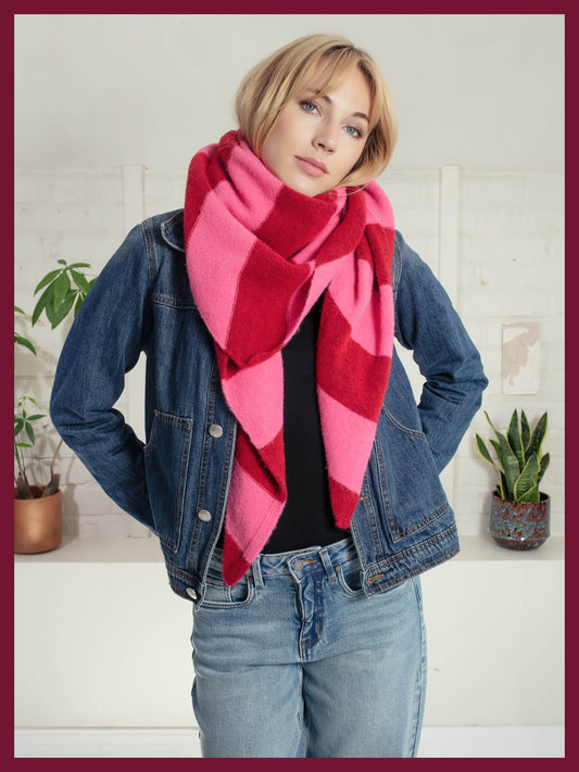Edwina Knitted Triangle Scarf - Pink Stripe