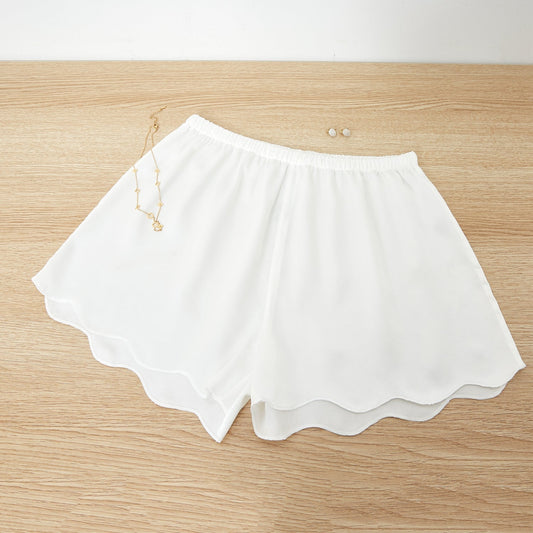 Pearl White Pure Silk Scallop Edged Shorts | 19 Momme Silk Charmeuse
