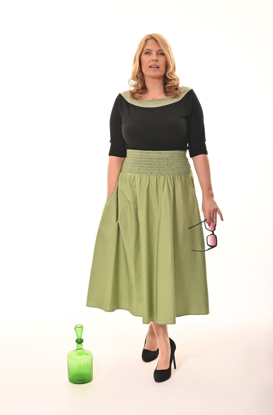 Regular price £75.00 GBPRegular priceUnit price / perSale price £75.00 GBPOrchid Midi Skirt With Pockets In Sage