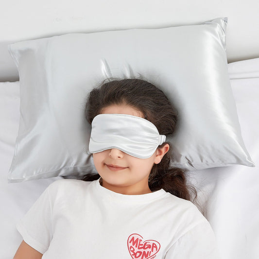 Silver Grey Pure Mulberry Silk Eye Mask | Kid Size | Silk Fibre Filling | 22 Momme | Float Collection