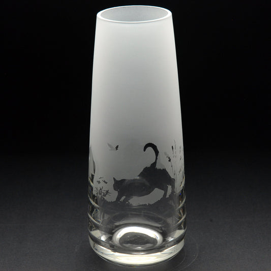 Cats Glass Bud Vase - Hand Etched/Engraved Gift