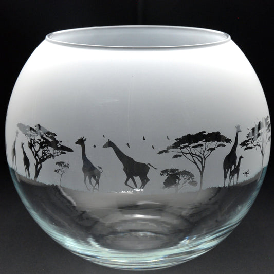 Giraffe Glass Flora Bowl Vase - Hand Etched/Engraved Gift