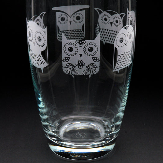 Cartoon Owl Glass Botanica Vase - Hand Etched/Engraved Gift