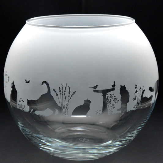 Cat Glass Flora Bowl Vase - Hand Etched/Engraved Gift