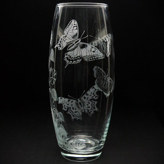 Convolvulus and Butterfly Glass Botanica Vase - Hand Etched/Engraved Gift
