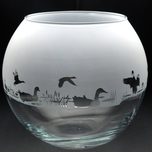 Duck Glass Flora Bowl Vase - Hand Etched/Engraved Gift