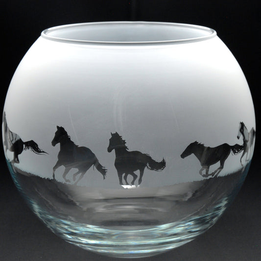 Galloping Horse Glass Flora Bowl Vase - Hand Etched/Engraved Gift