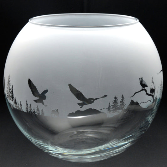 Owl Glass Flora Bowl Vase - Hand Etched/Engraved Gift