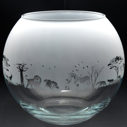 Safari Glass Flora Bowl Vase - Hand Etched/Engraved Gift