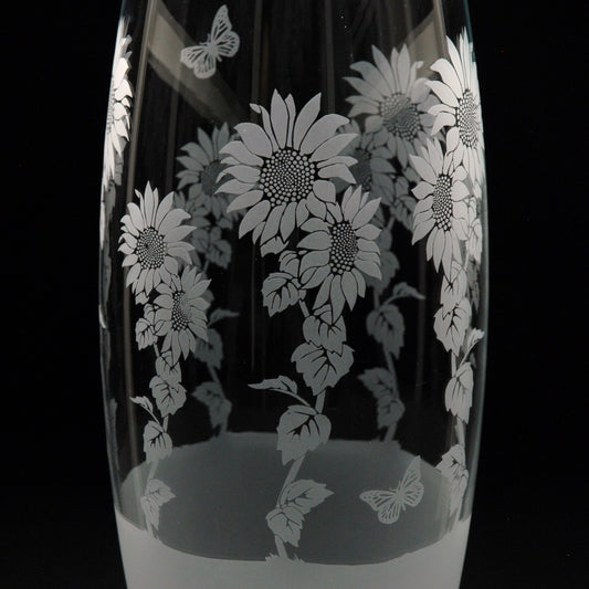 Sunflower Glass Botanica Vase - Hand Etched/Engraved Gift