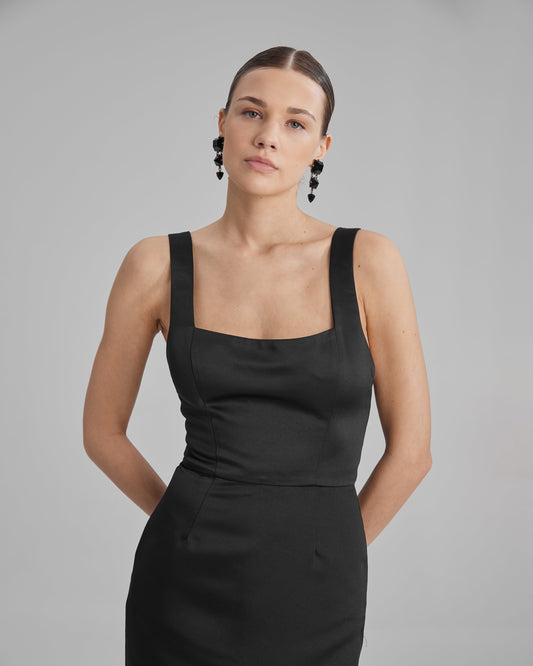 Regular price From £315.00 GBPRegular priceUnit price / per£630.00 GBPSale price From £315.00 GBPIDA DRESS | square neckline pencil maxi in black
