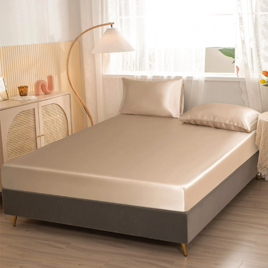 A luxurious set of pure silk flat sheet, fitted sheet and duvet cover. Available to be purchased separately or as a 4-piece set.