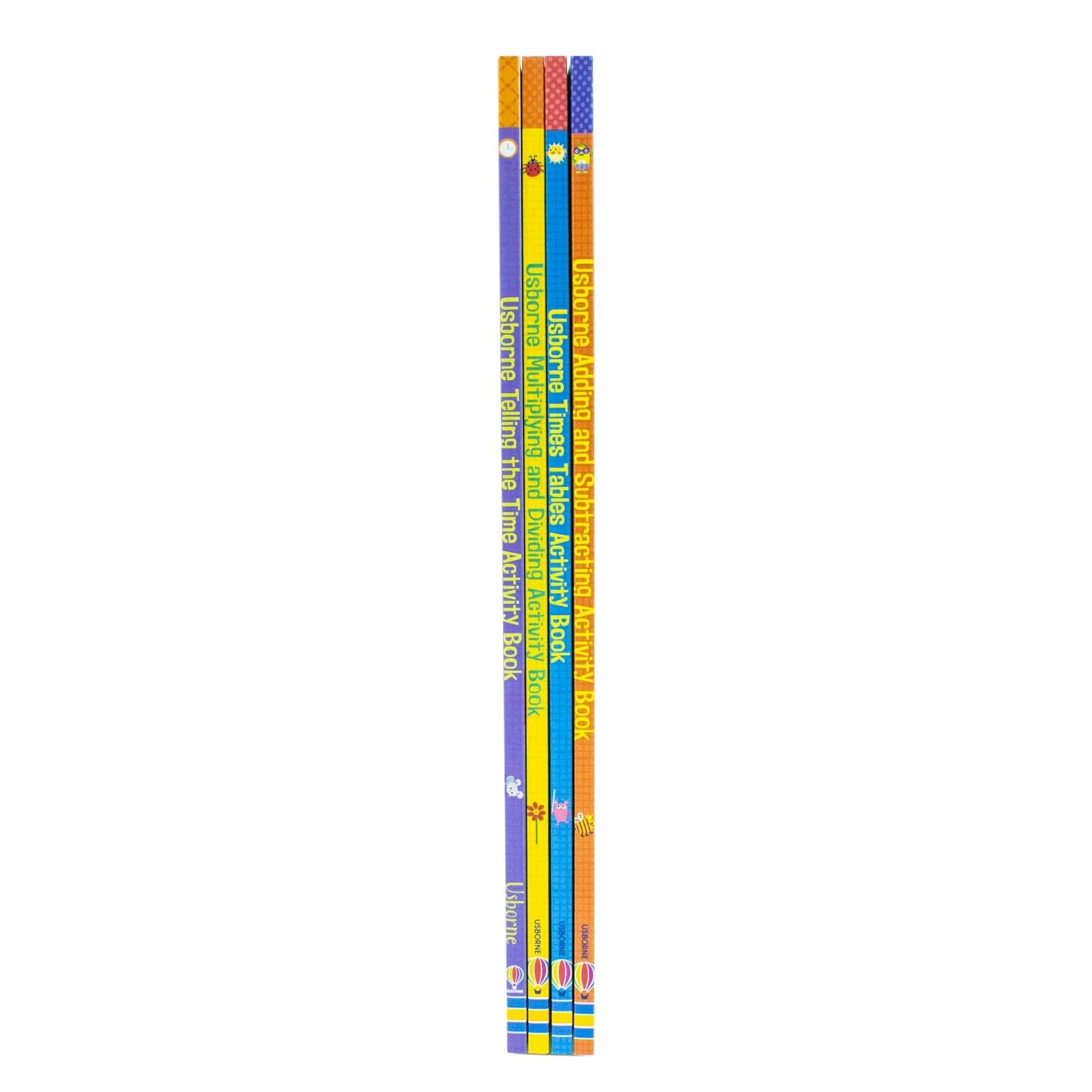 Children Usborne Educational Workbooks 4 Books Set (Addition & Subtraction, Times Tables, Telling the Time, Multiplying Dividing)