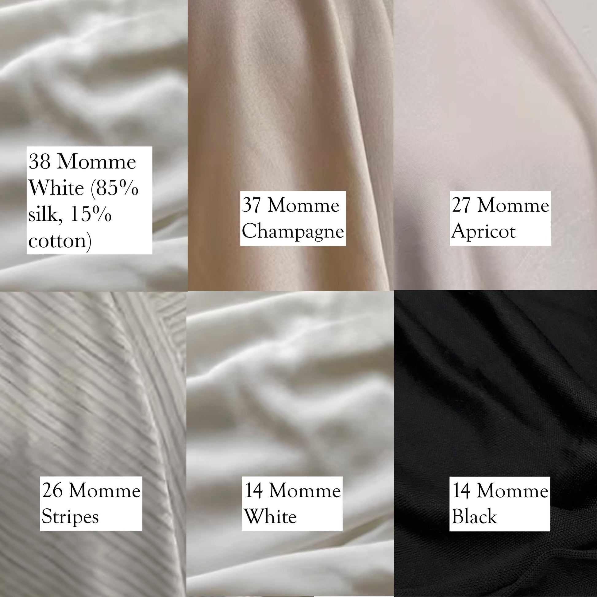 - Please note: different colours have different density. While 14 momme is lightweight and sheer, 25 momme and above are dense and buttery.