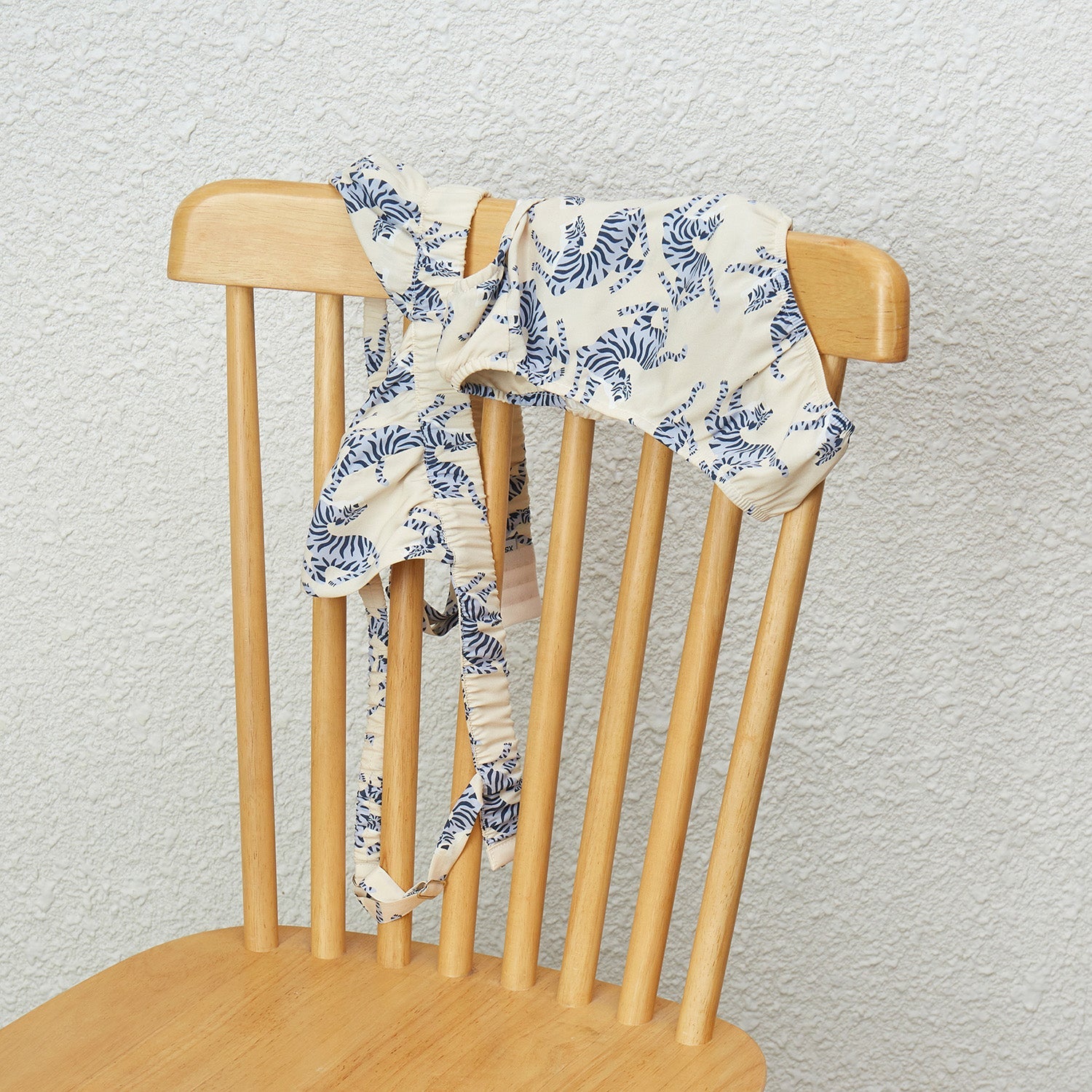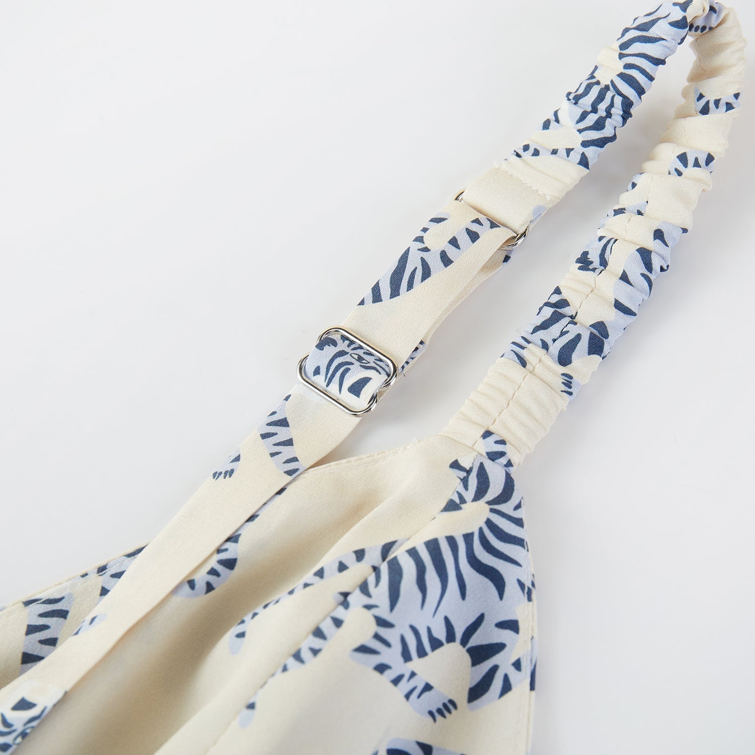 Recognizable by their striking stripes, tigers have long been a symbol for power, strength and courage. Unleash your inner tigress with the Arching Tiger print, which showcases a blue tiger in an arched pose on a warm-toned ivory background. Originally used for bikini panties, we’ve brought this beautiful style back for more custom panty and bra styles.