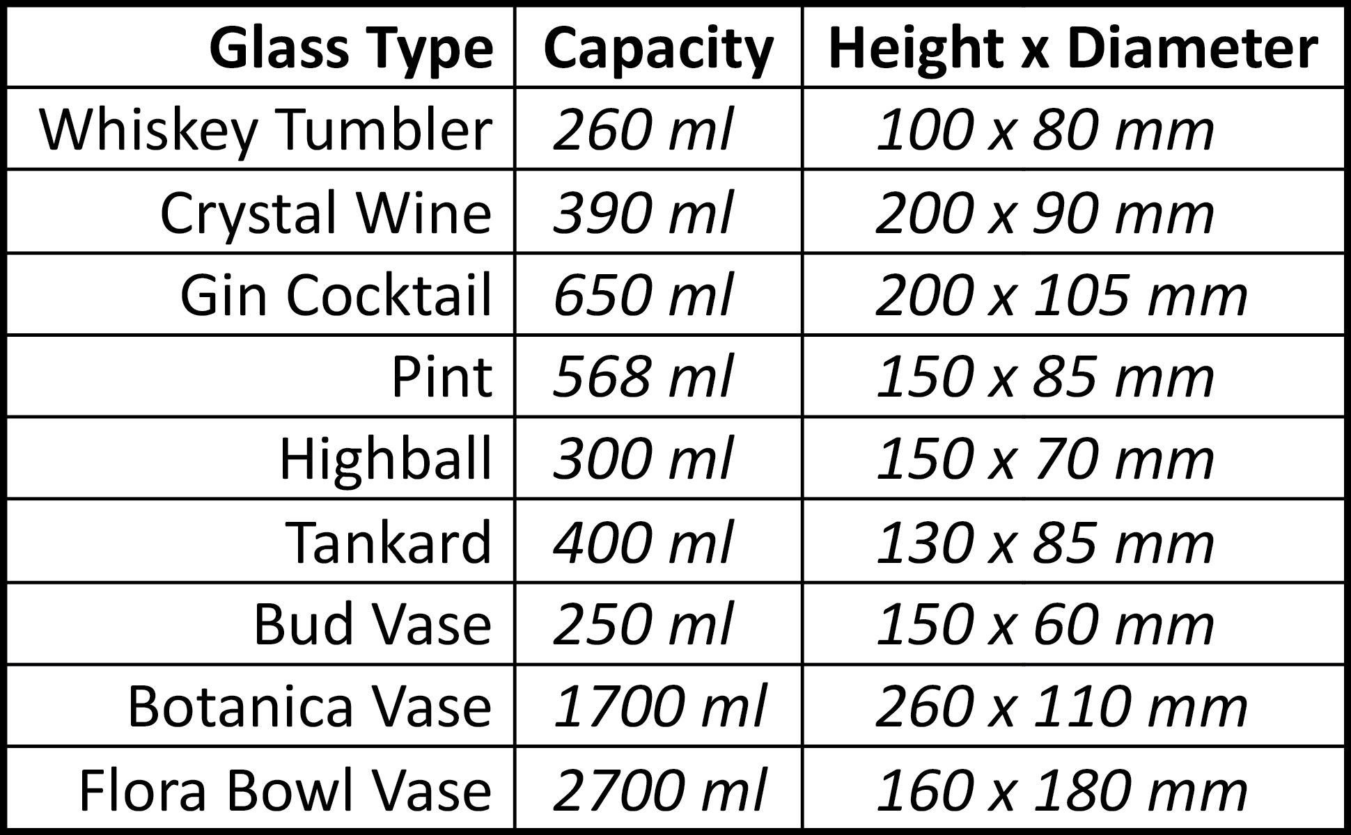 • Minor air bubbles & slight engraving variations are natural markings of handcrafted glass