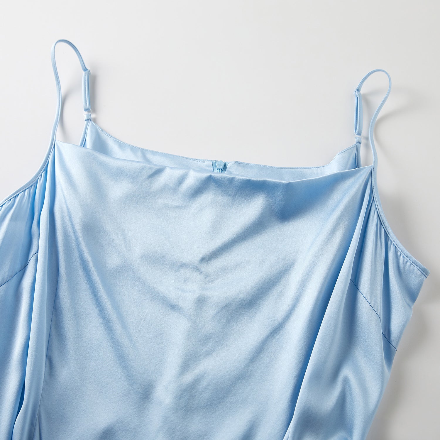 Soft as morning mist, this is a perfect robe and slip dress set for a bride, or as a luxurious piece to add to your daily wardrobe. Let your evenings be a magical time. Unwind in the splendid embrace of pure silk charmeuse. This robe is designed with no pockets so it drapes smoothly around you, while the slip dress is designed without slits to hug your every curve. Feel free to choose your favourite colours and make alternations to the design.
