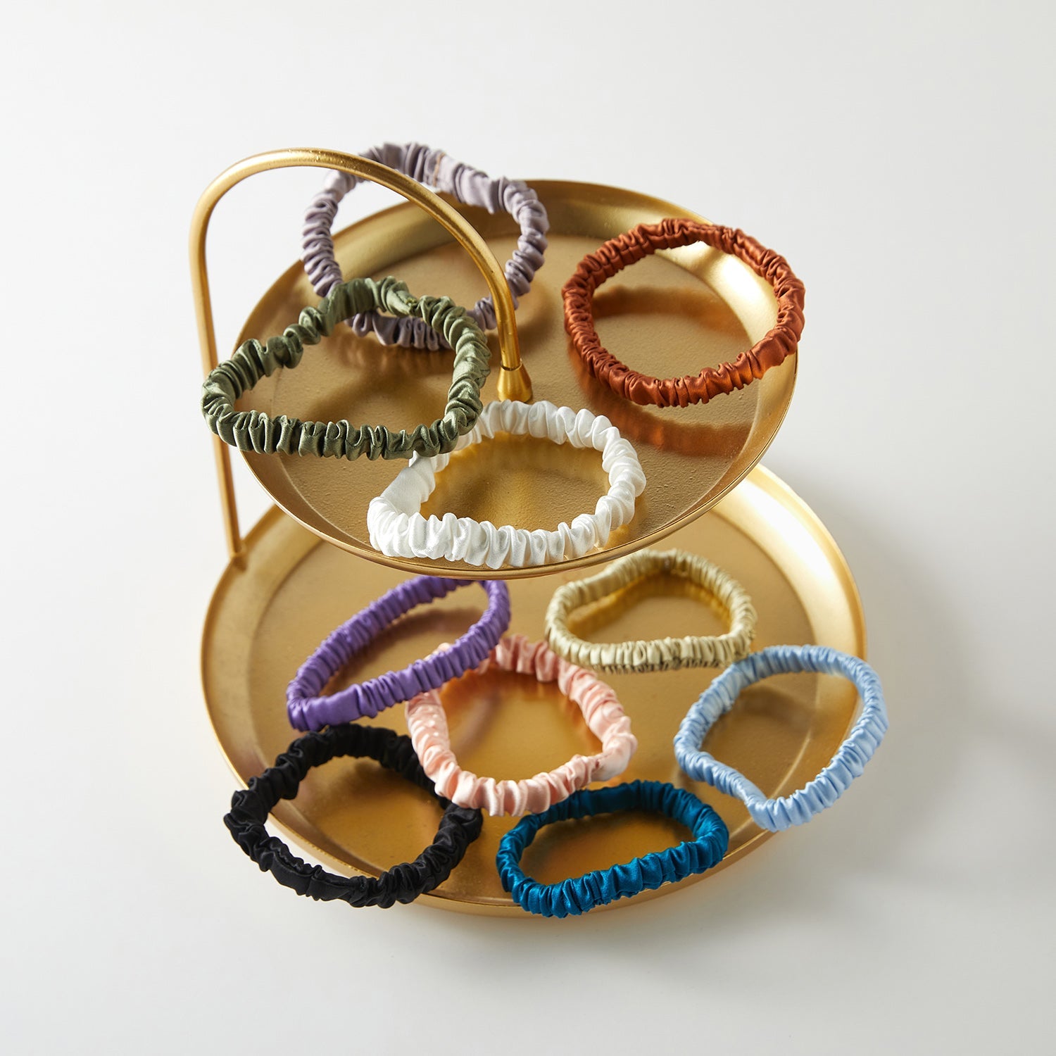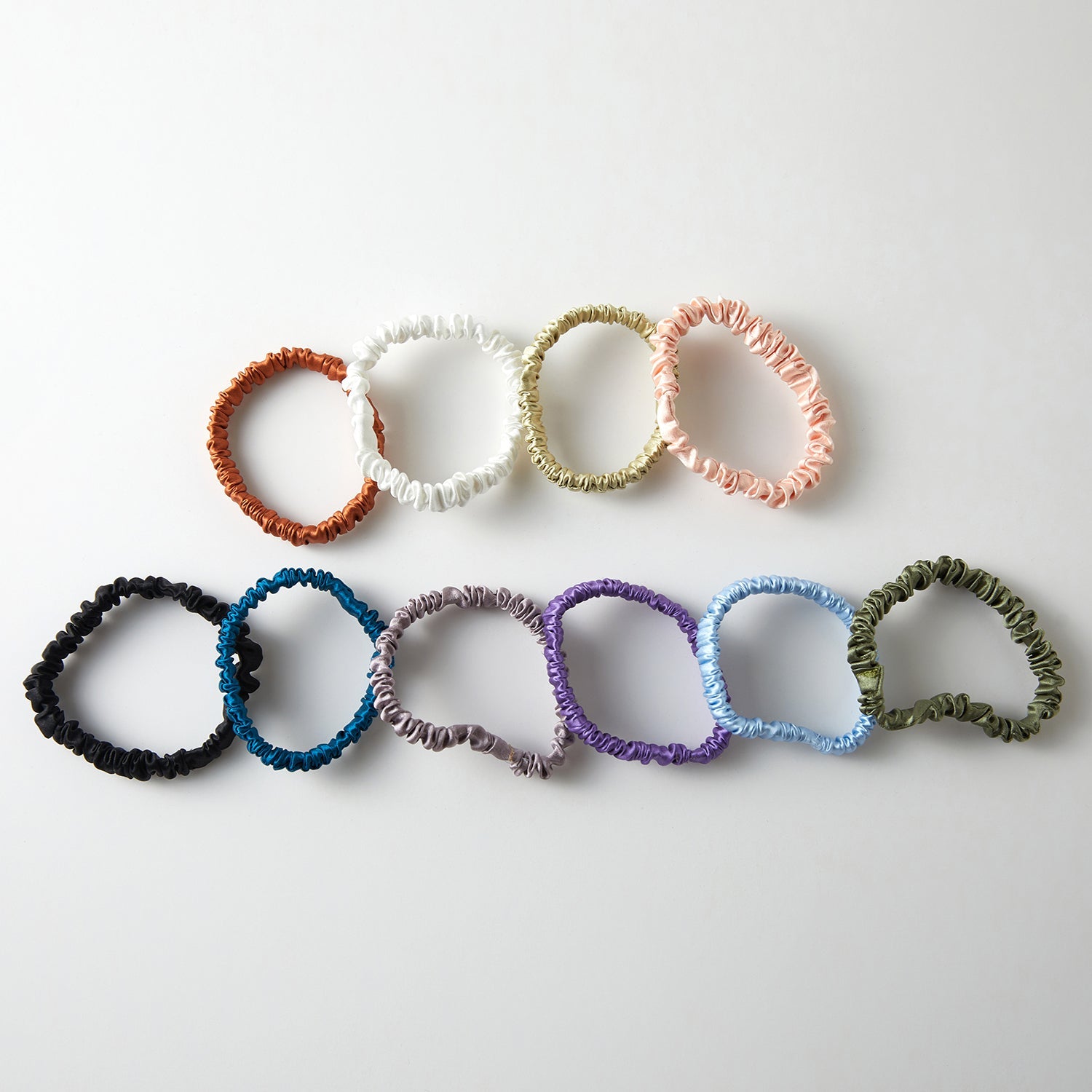 Set of 10 Mulberry Silk Skinny Scrunchie Mystery Bag | Zero Waste Scrunchies | Solid and Print | 0.4 inch | 16 - 32 Momme